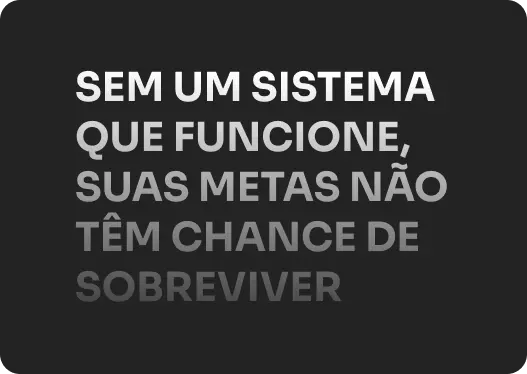 Metas, por si só, não funcionam, ponto. Elas precisam de um sistema consistente e realista para te trazer resultados. Sem isso, você acaba assombrado em um ciclo de frustração e desespero constante.